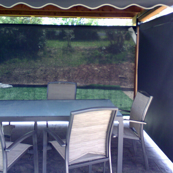 Toldo lateral con cofre, se despliega horizontalmente. Especialmente diseñado como cortavientos y separador de ambientes para terrazas, hostelería y balcones.