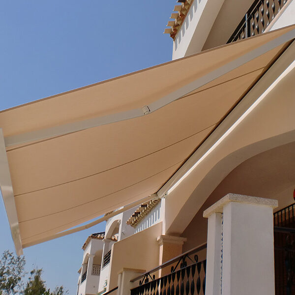 Toldo extensible de sólidos brazos articulados de doble cable. Proporciona la protección, confort y decoración del espacio sin ningún obstáculo, dejando libre y despejada la zona que cubre.