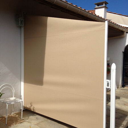Toldo bajante con anclaje a suelo. Especialmente diseñado para la separación de espacios o la protección conta el viento en terrazas, hostelería y balcones.
