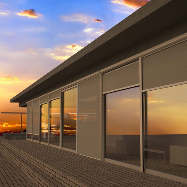 Toldo bajante guiado lateralmente por un cable de acero tensado ó una varilla de acero inox. Especialmente diseñado para cristaleras, balcones y terrazas.